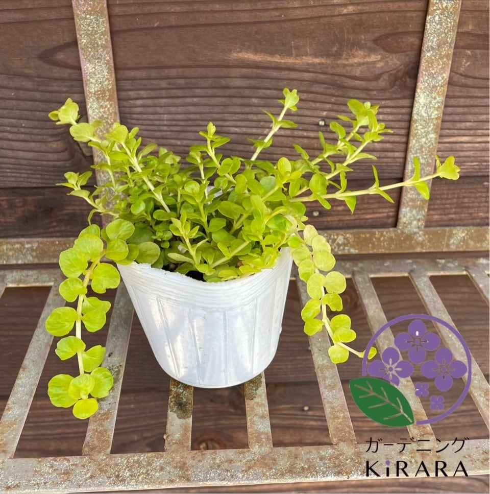 小さな葉と明るい黄金葉が愛らしいリーフプランツです。地面を覆いながら繁殖していくので、グランドカバーに最適。