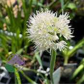 暑さに強い夏咲きのアリウム。ミレニアムに似ているが、本種は夏に爽やかな印象の白花に薄いクリームピンクで、やや草丈が高い。白いボール状の花が次々と咲き、美しい。植えっぱなしOK。