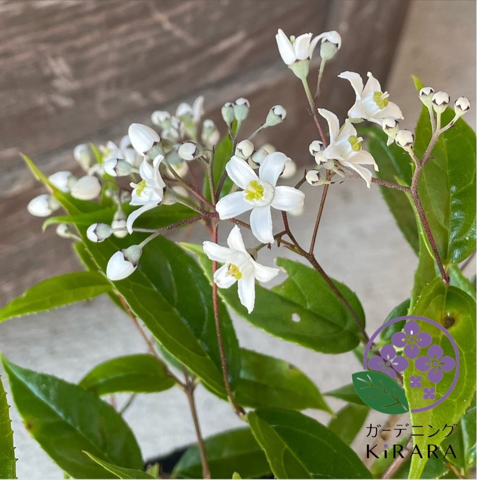 鈴なりに咲く可憐な白い花と深緑の光沢ある葉が魅力的な品種です。枝が長くなると弓状に枝垂れる樹形に。和洋どちらの庭にも合います。花壇だけでなく寄せ植えで楽しむのもおすすめです。丈夫で刈り込みにも強いです。