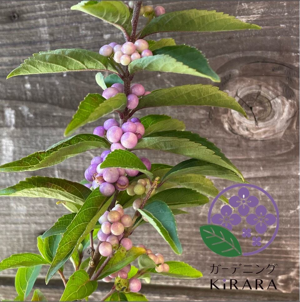 紫の実の色鮮やかな美しさを、平安の美女紫式部にたとえられている花木です。花が咲き実りまで長い期間、庭先で楽しむことができます。小鳥が好みます。